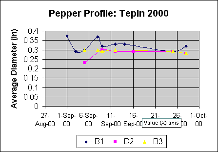 During 9 harvests, min, max, and average pepper diameter were determined.